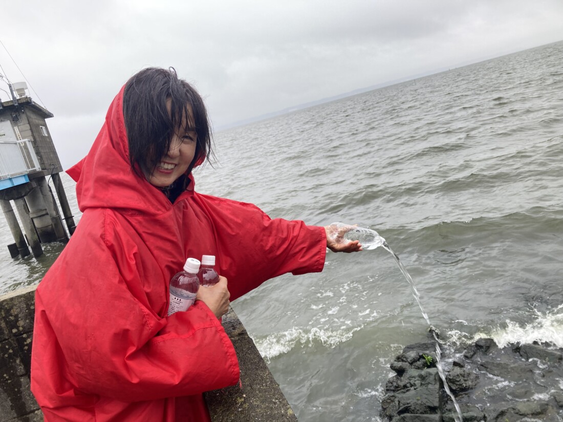 ボトルに書いてある想いを一本ずつ量子場クリスタライズで水に転写して、放水しました。