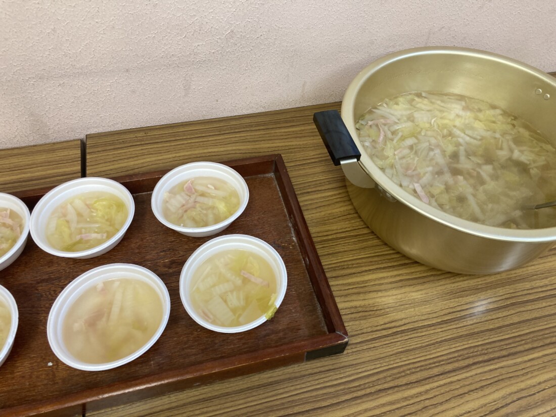 土壌改良剤を使って土と農作物に撒いて出来た、安心安全で食べるだけで元気になる野菜(ブロッコリー、大根、白菜、ほうれん草)を寄付して頂き、少ない人数でしたが、色々副菜を作りました。